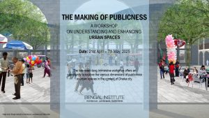 April-May Session presented seminars, design workshops and forums that addressed various scales of landscape operations, from water urbanism and climate induced environmental adaptations to botanical awareness and landscape rearrangements. Session included following highlights: In-depth theoretical lectures on the variation from object-making to complex configurations by India’s renowned architectural teacher Neelkanth Chhaya, seminar lectures on the categories and implications of complexes by Kazi Khaleed Ashraf, lectures on the agricultural basis of our habitations by well known rice scientist Abed Chaudhury, lectures on plants and landscapes by eminent botanist Dwijen Sharma, and lectures/workshops by leading architects on their work on creating complexes. Session also included an on-site stay and workshop with Khandaker Hasibul Kabir and Marina Tabassum in Hakimpur area in Jessore. Ivan Valin and Dorothy Tang conducted a week-long workshop on landscape design.